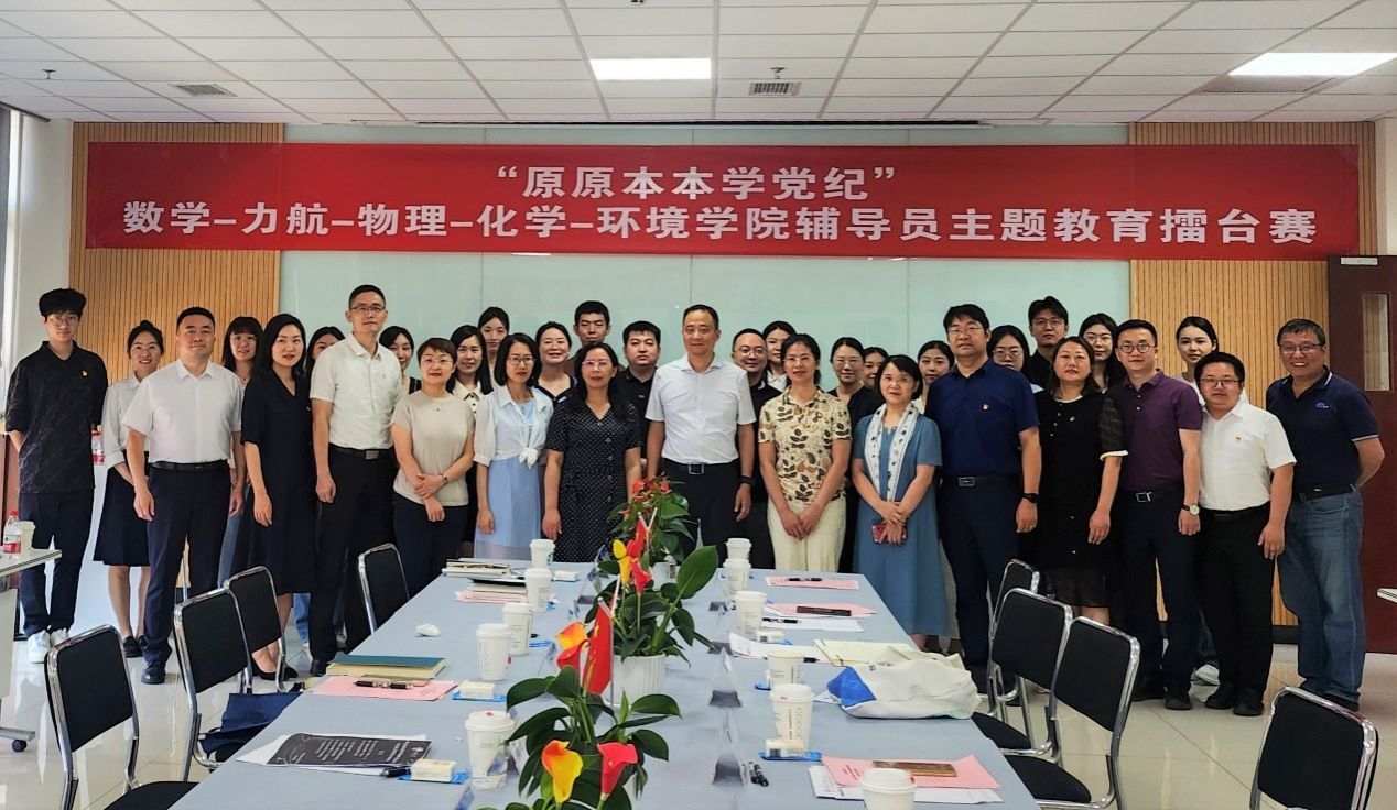 为深入学习贯彻修订后的《中国共产党纪律处分条例》,扎实开展党纪学习教育,锚定学纪、知纪、明纪、守纪的学习目标,切实推动主题教育走深走实、见行见效,5月23日下午,vwin德赢ac米兰官网、力学与航空航天学院、物理科学与技术学院、化学学院、环境科学与工程学院在犀浦校区X30456会议室联合举办“原原本本学党纪”辅导员主题教育擂台赛。校党委副书记高平平、相关单位负责人以及五个学院全体辅导员参加活动。