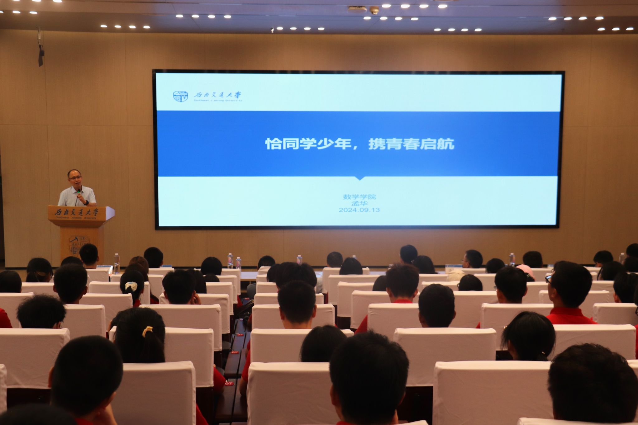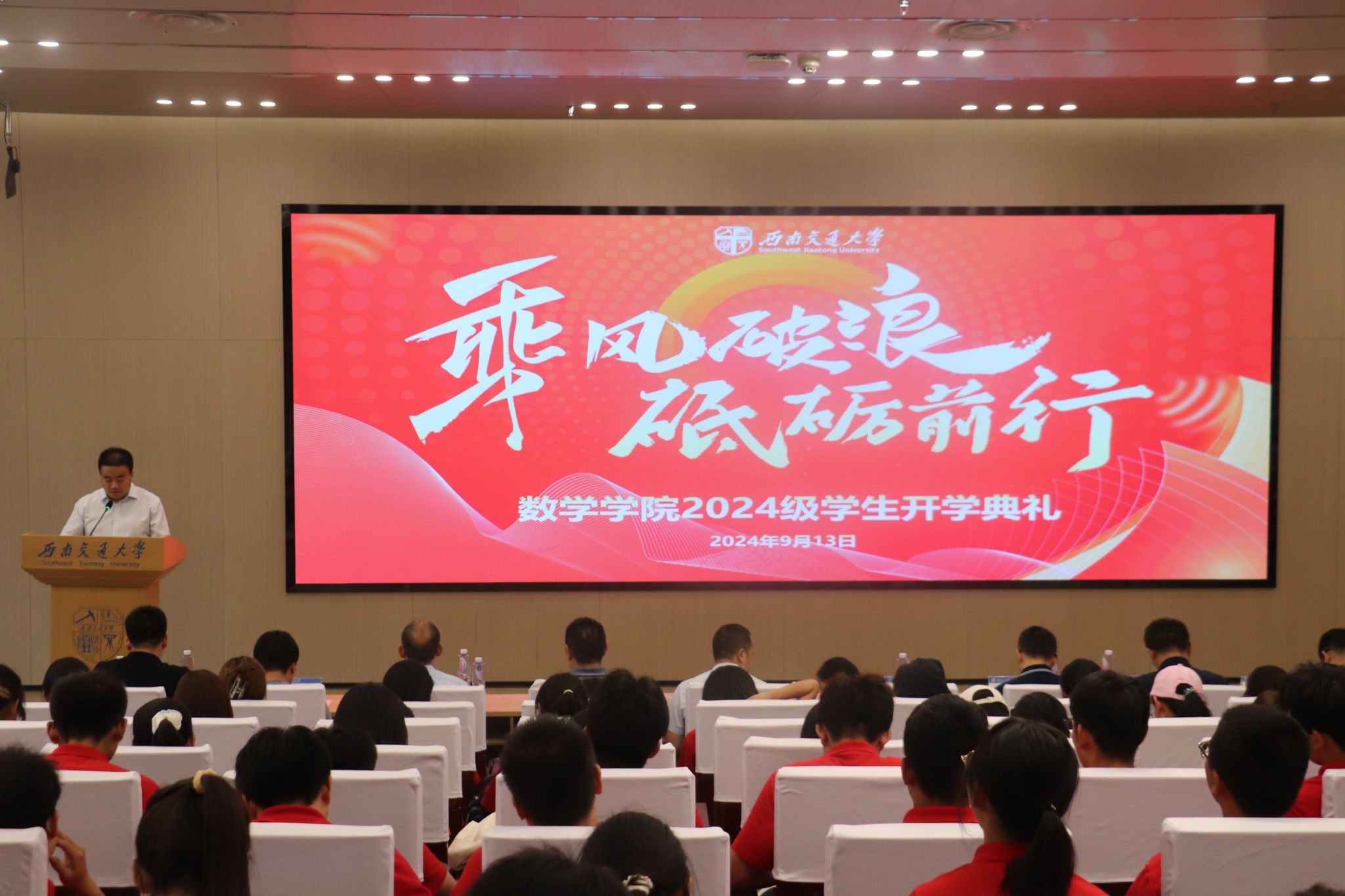 9月13日下午2时30分,vwin德赢ac米兰官网2024级学生开学典礼在犀浦校区图书馆二号报告厅隆重举行。出席会议的嘉宾有vwin德赢ac米兰官网党委书记徐革教授、院长杨晗教授、副院长潘小东副教授、副院长王璐教授、副院长李志辉副教授、信息与计算科学系杨洋教授、信息与计算科学系主任孟华副教授、统计系黄磊副教授、数学2024-01班班导师崔宁伟、数学2024-01班班导师吴贯锋、统计2024-02班班导师何莎、统计2024-02班班导师程凤、大数据2024-01班班导师何星星、大数据2024-01班班导师洪思奥、大数据2024-02班班导师陈章友、大数据2024-02班班导师丁猛、团委书记张素子及全体学工组老师。会议由vwin德赢ac米兰官网党委副书记黄祥主持。