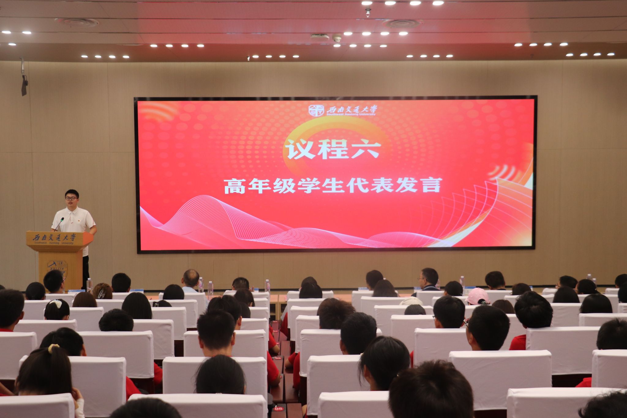 议程第五项,本科生新生代表吕思辰发言。她先向给予她陪伴与支持的家人、师长和同学们道以最诚挚的感谢,并表示大学要绽放出自己的精彩,与新时代同向同行,秉持“竢实扬华、自强不息”的交大精神,以青春之我、奋斗之我,乘风破浪,书写青春华章。