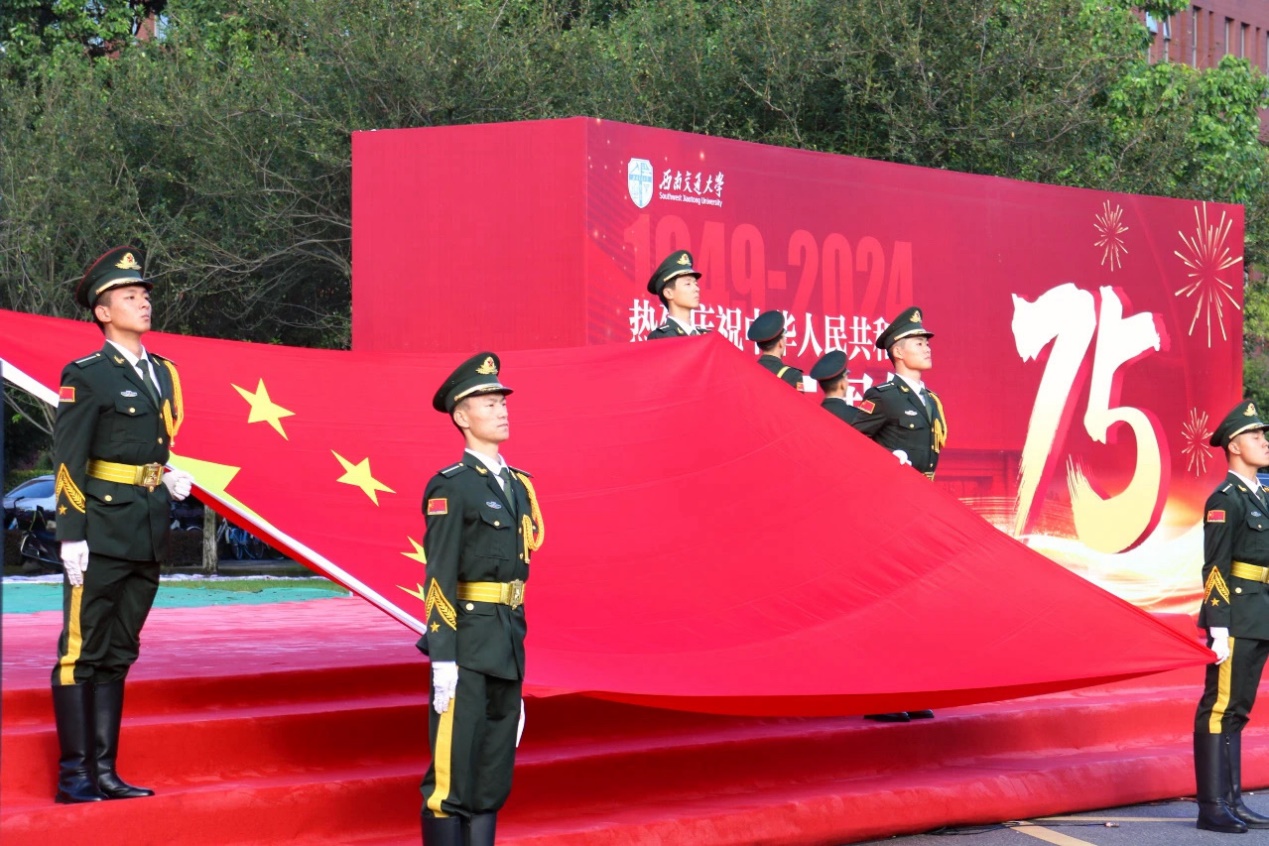 礼赞新中国,奋进新时代。为热烈庆祝中华人民共和国成立75周年,进一步激发全校师生的爱国情怀,10月1日上午,学校在九里、犀浦两校区举行“我与祖国共成长”庆祝中华人民共和国成立75周年升国旗仪式。2024级数学拔尖班团支部、2024级数学1班团支部全体支部成员开展主题团日活动。