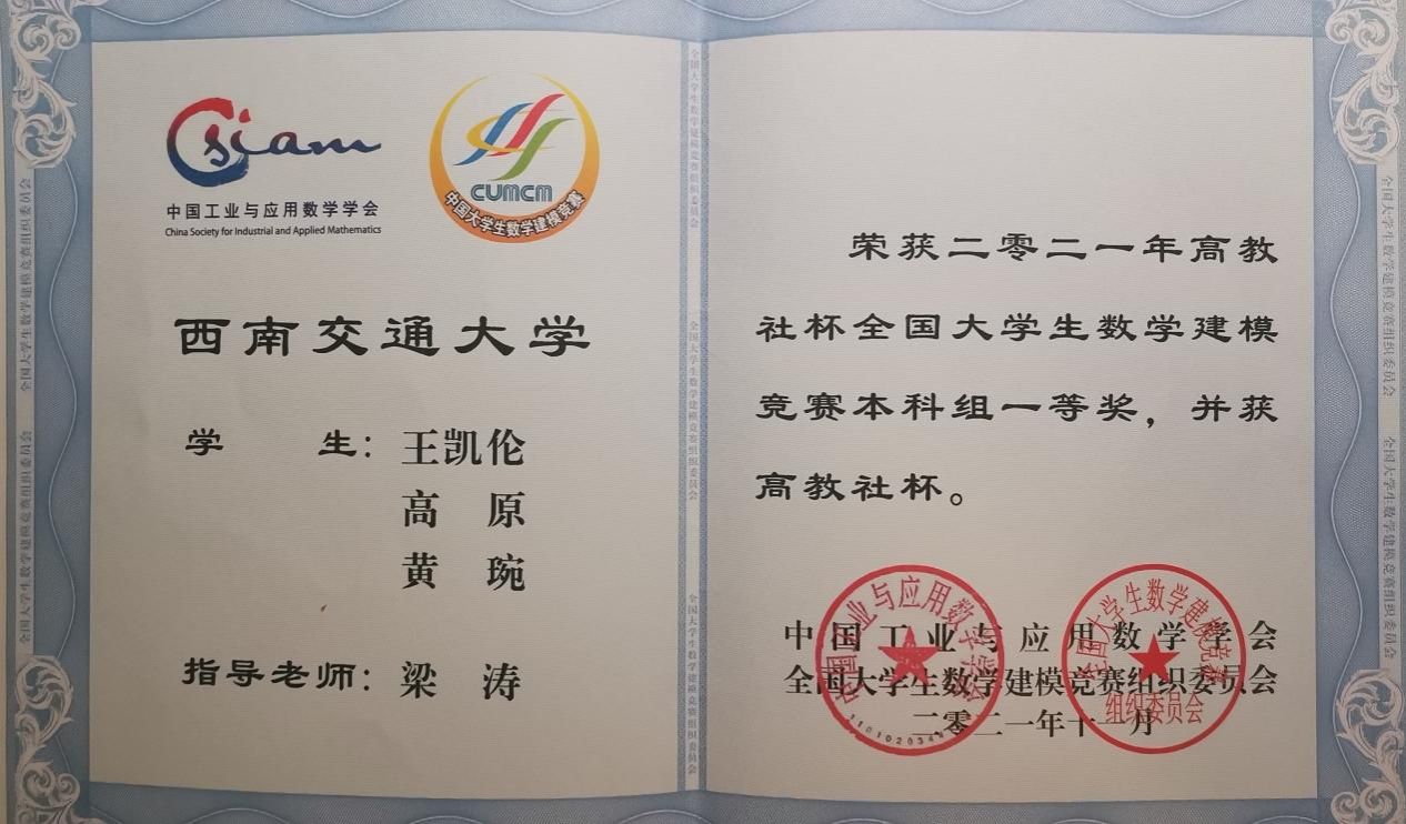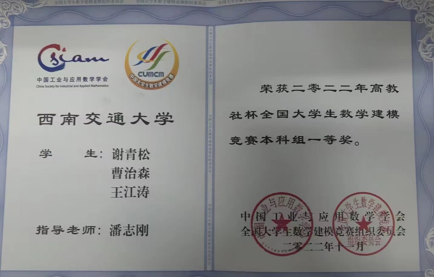 同时,作为vwin德赢ac米兰官网大学生创新教育基地,数学实验中心承担着全校本研各类数学建模竞赛活动,包括“高教杯”全国大学生数学建模竞赛、美国数学建模竞赛、苏北数学建模竞赛、华中数学建模竞赛、电工杯数学建模竞赛、“华为杯”全国研究生数学建模竞赛及校内各种竞赛活动。近几年,中心参与各类数学建模竞赛成绩突出,“高教杯”大学生数学建模竞赛屡获全国一等奖、二等奖等重要奖项,其中2021年斩获“高教社杯”全国唯一最高奖,取得历史性突破。总成绩在四川省所有高校中名列第一,全国前列。